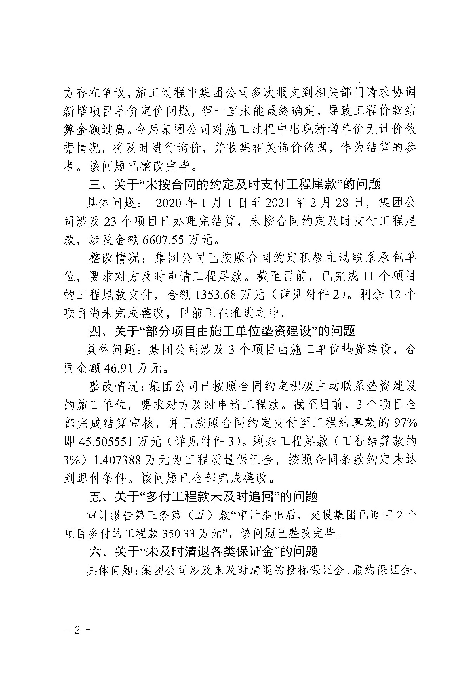 2020年度審計項(xiàng)目發(fā)現(xiàn)問題整改公開-南寧市政府投資項(xiàng)目工程結(jié)算情況專項(xiàng)審計調(diào)查