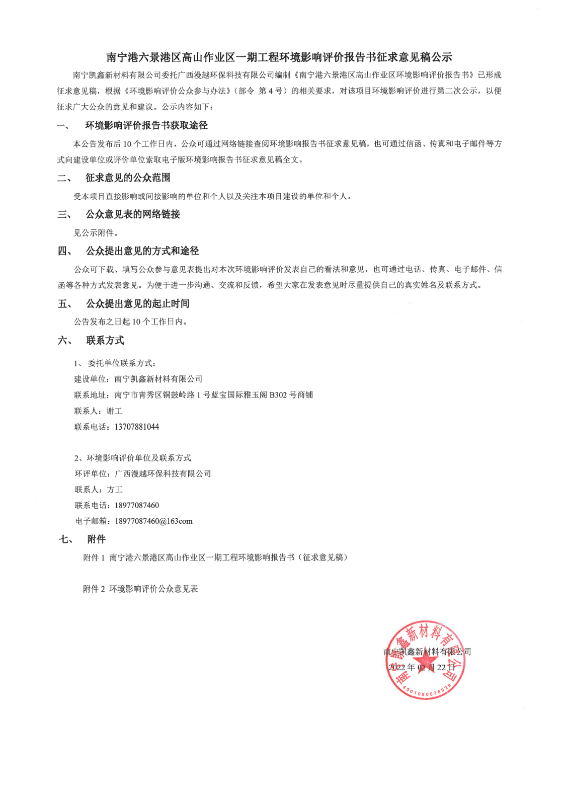 南寧港六景港區(qū)高山作業(yè)區(qū)一期工程環(huán)境影響評(píng)價(jià)報(bào)告書(shū)征求意見(jiàn)稿公示