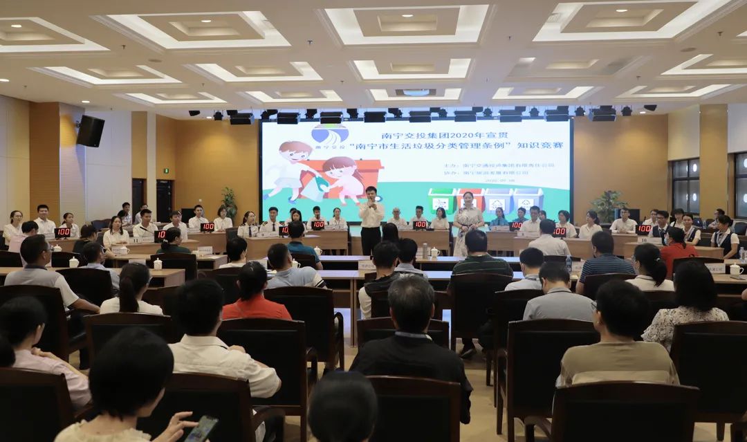 為貫徹落實(shí)習(xí)近平總書記對垃圾分類工作作出的重要指示精神,倡導(dǎo)廣大干部員工共同參與垃圾分類,樹立綠色的環(huán)保意識,9月8日,集團(tuán)公司在四樓多功能報告廳舉行“垃圾分類我先行·創(chuàng)建文明齊參與”專題知識競賽。集團(tuán)公司領(lǐng)導(dǎo)農(nóng)明姬、張玉波、黃海燕,南寧市國資委綜合科科長謝雄勝以及市屬八大集團(tuán)相關(guān)人員出席比賽。 本次比賽各子公司共組成11支隊伍參加,比賽設(shè)置必答題、搶答題、互動答題和加賽題四個環(huán)節(jié),題目涵蓋了《南寧市生...