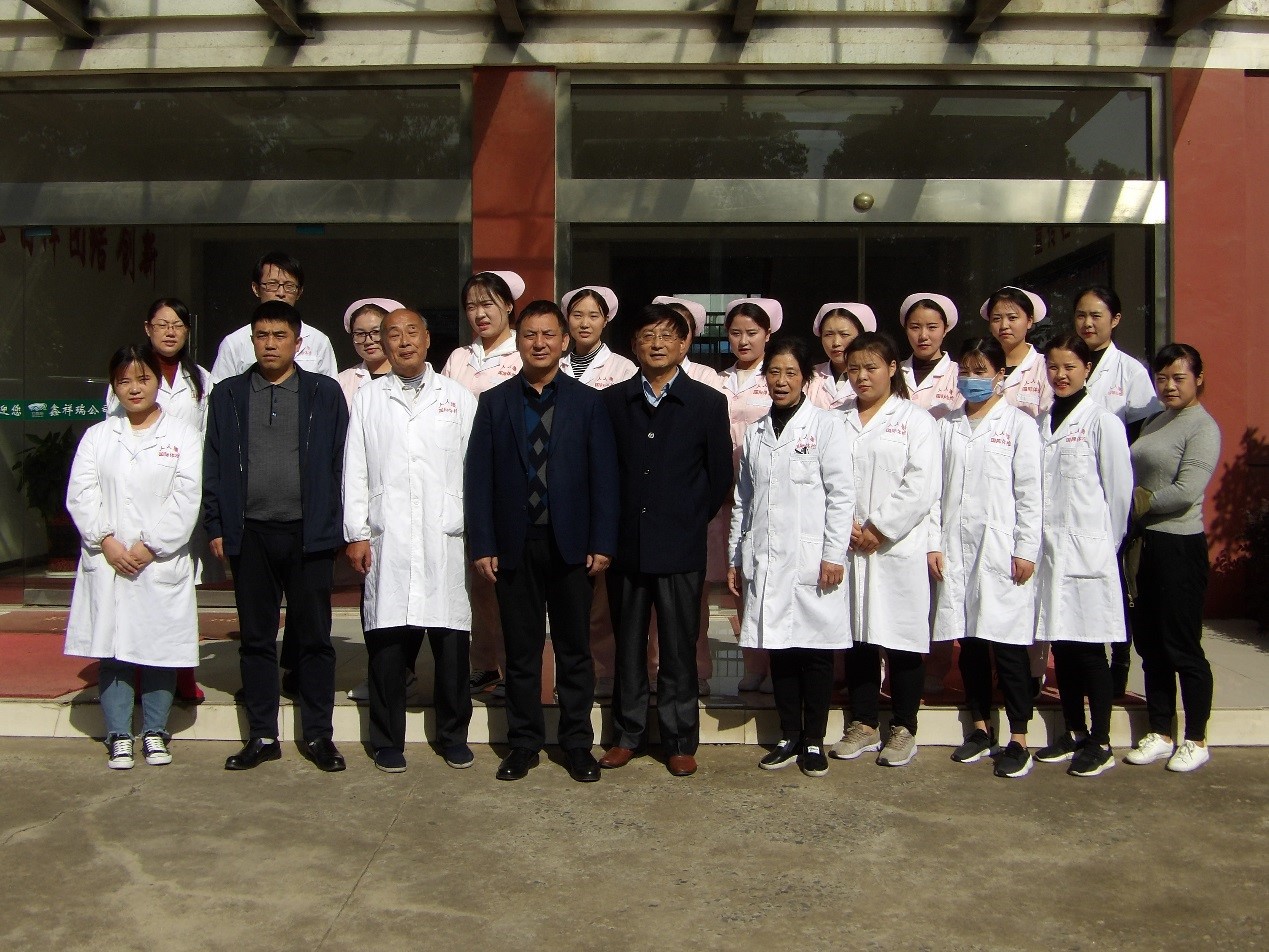 圖為:醫(yī)護人員與公司高管在鑫祥瑞辦公樓前合影