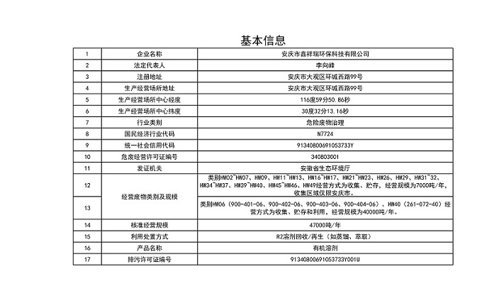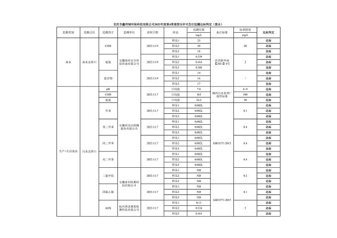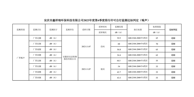 安慶市鑫祥瑞環(huán)保科技有限公司2023年第4季度排污許可自行監(jiān)測公開