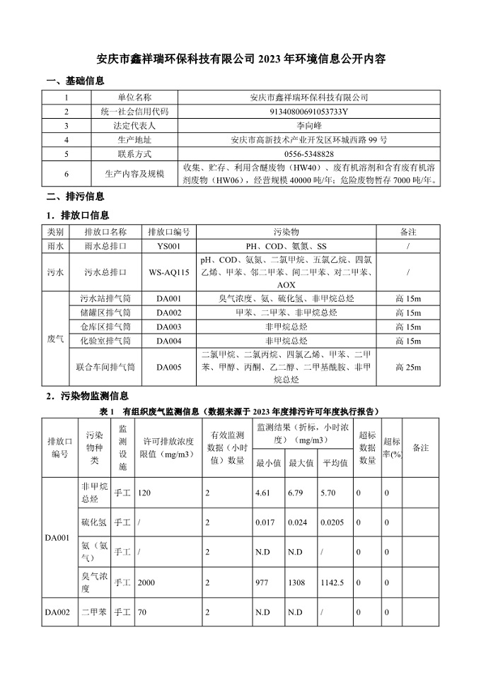 安慶市鑫祥瑞環(huán)??萍加邢薰?023年環(huán)境信息公開內(nèi)容