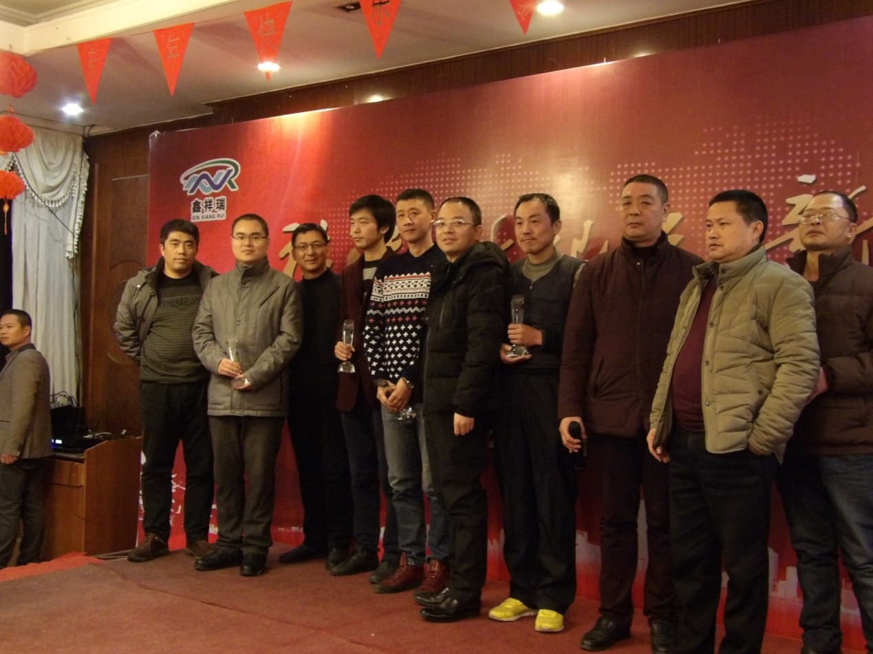 公司領(lǐng)導(dǎo)葉劍飛、李向峰、吳虎生、姚喜軍、王龍江與優(yōu)秀員工合影