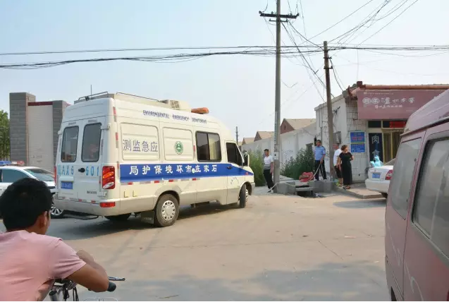石家莊市環(huán)保局的應(yīng)急監(jiān)測車開進(jìn)事發(fā)現(xiàn)場。